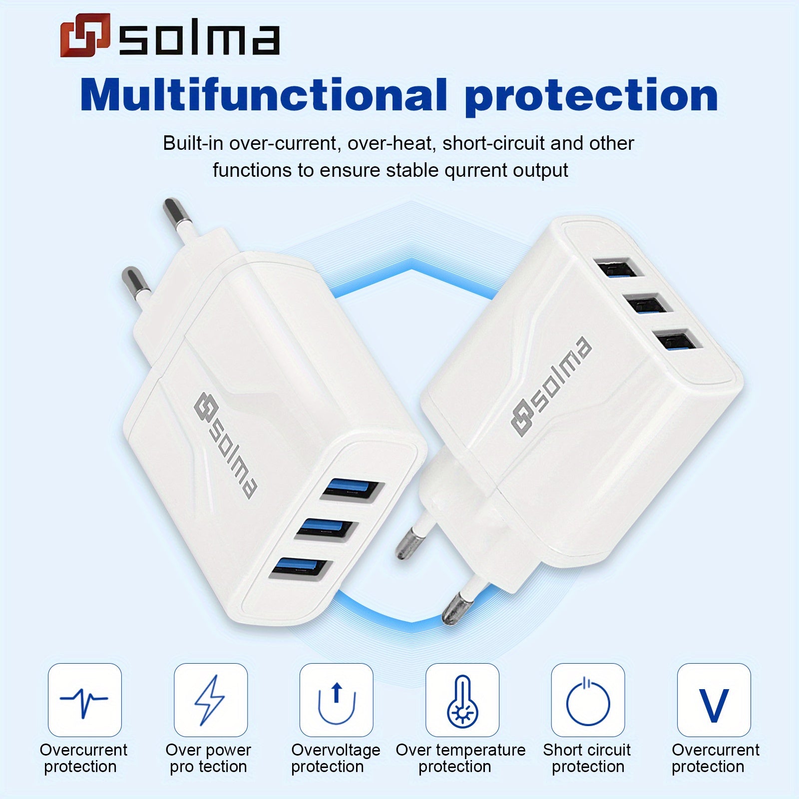 3 USB-portar Multifunktionellt laddningshuvud 5V 1A USB-laddningshuvud Enkel USB-laddare för mobiltelefon och surfplatta för iPhone och Android