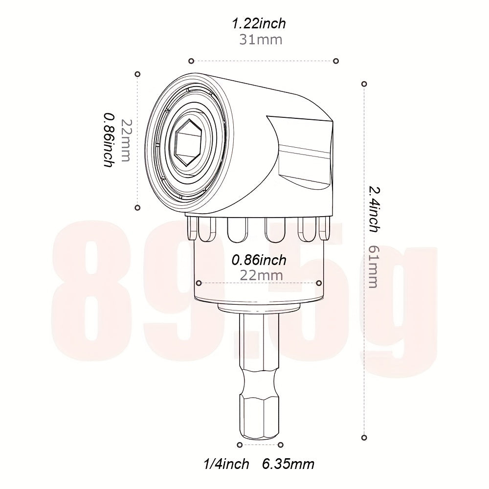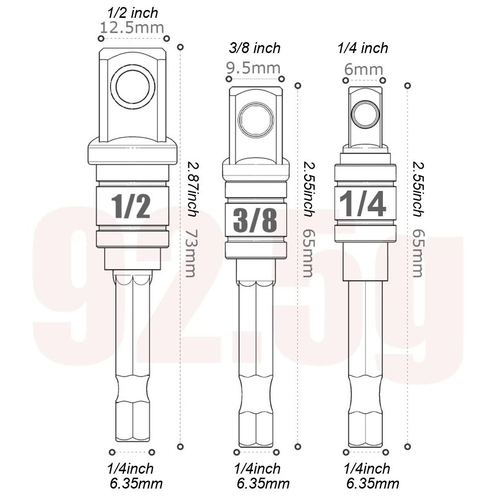 Hylsnyckeladapter, förlängningssats, borr, 3 delar, 1/4" 3/8" 1/2" universalhylsadaptersats och rätvinklig borr, 105 graders rätvinklig skruvmejselsats, borr, sexkantshylsadapter