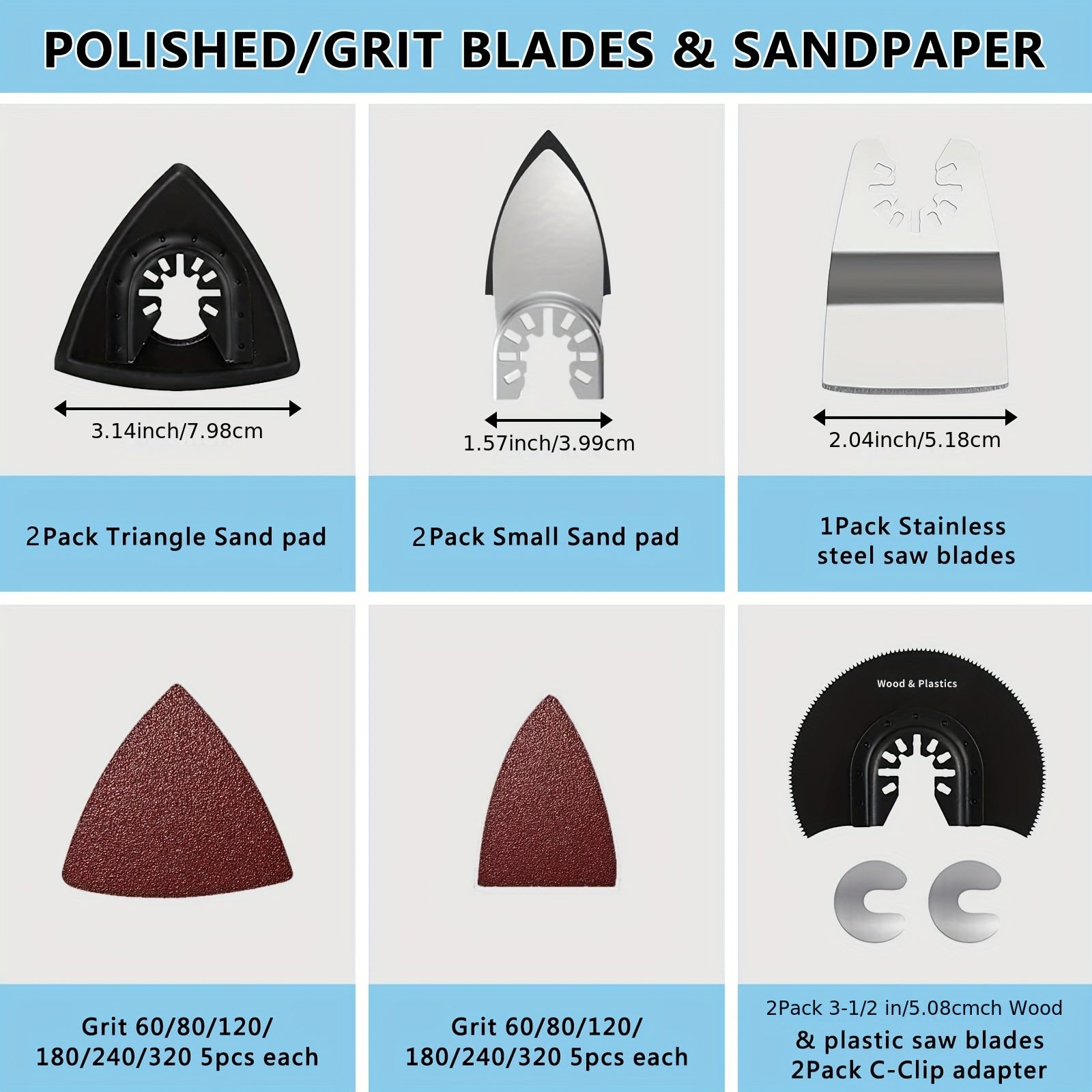 97-delars set med oscillerande sågblad: Multiverktyg för trä- och metallskärning, bimetallsågblad + sandpapper och snabbkopplingssågblad - Passar Dewalt, Ryobi, Milwaukee, Rockwell, Fein, Makita
