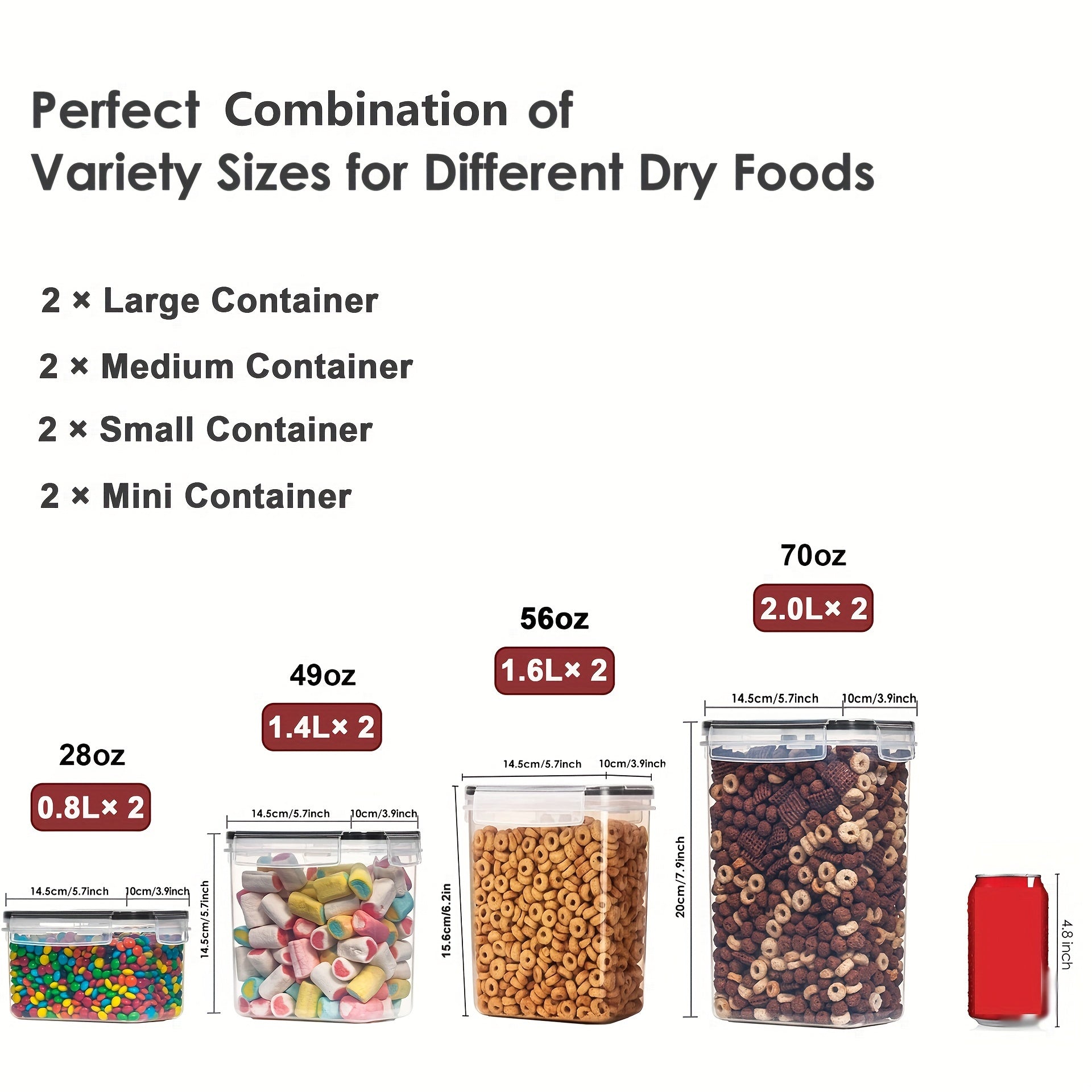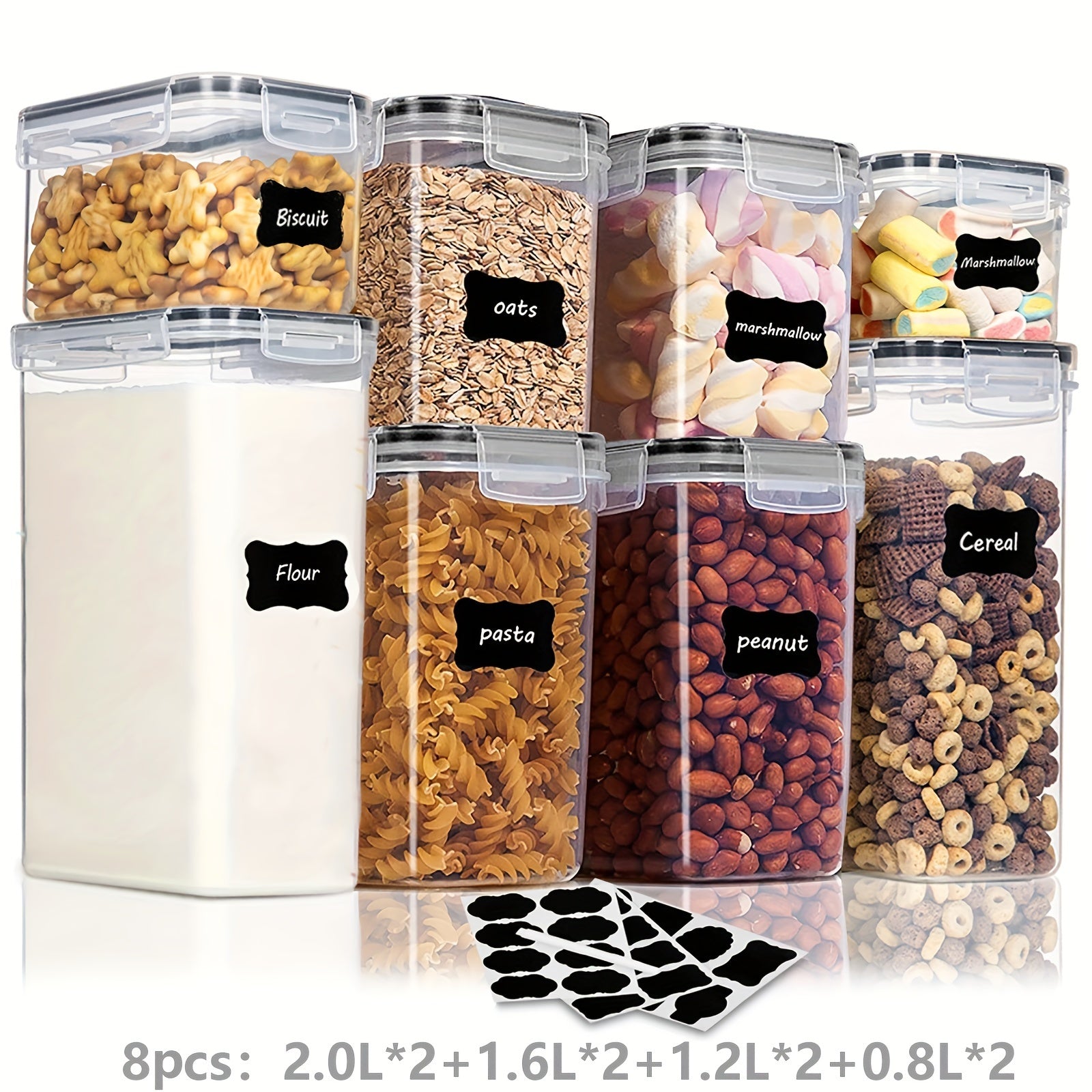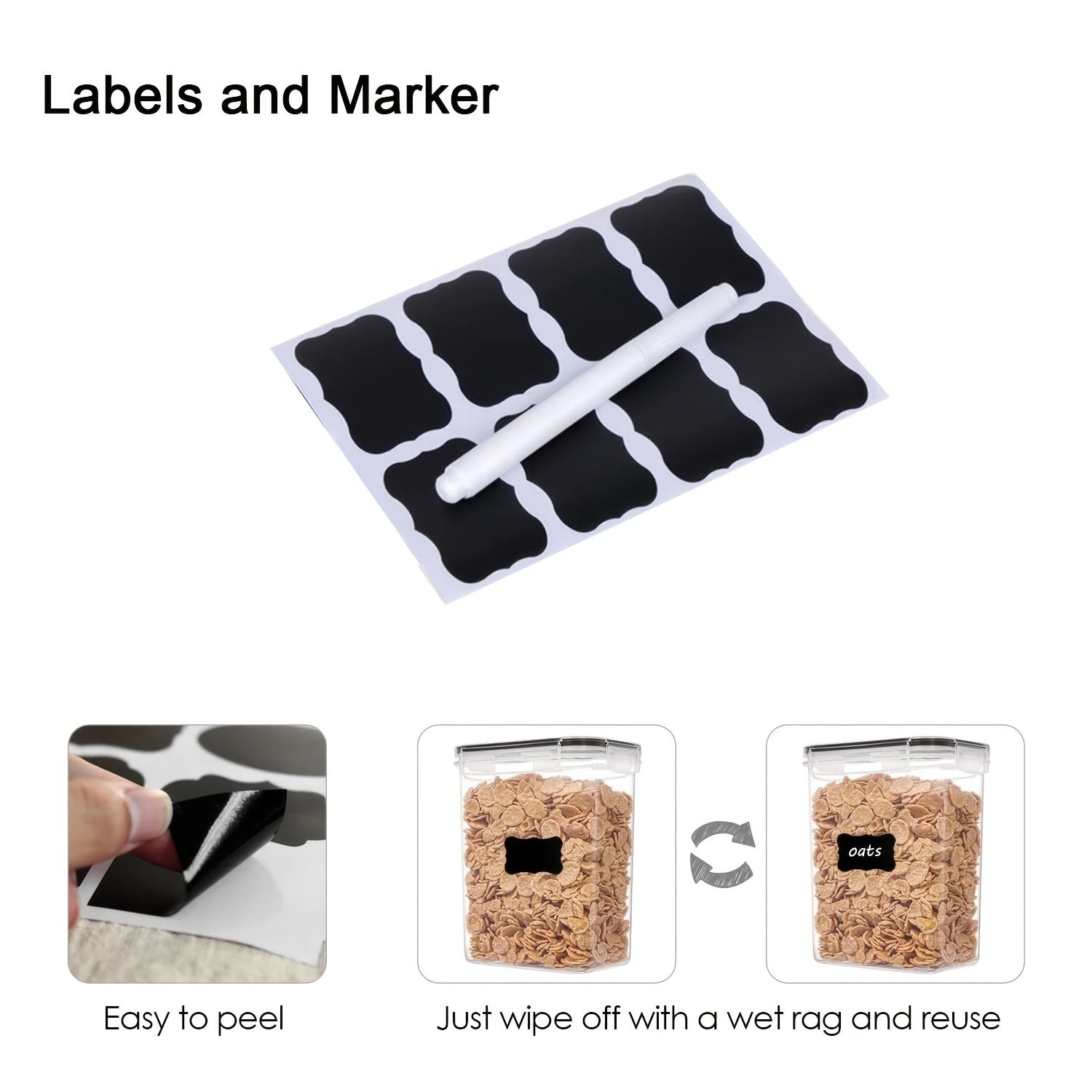 Gör en enorm skillnad i skafferiorganisationen ---- Om du redan tröttnat på mina mjöl- och sockerpåsar, tveka inte att välja våra matförvaringsbehållare. Dessa mjölbehållare kommer att få allt att se prydligt och i ordning ut. Levereras med 8 premium matförvaringsbehållare, etiketter och tuschpenna, de kommer också att vara en perfekt present till alla familjer.