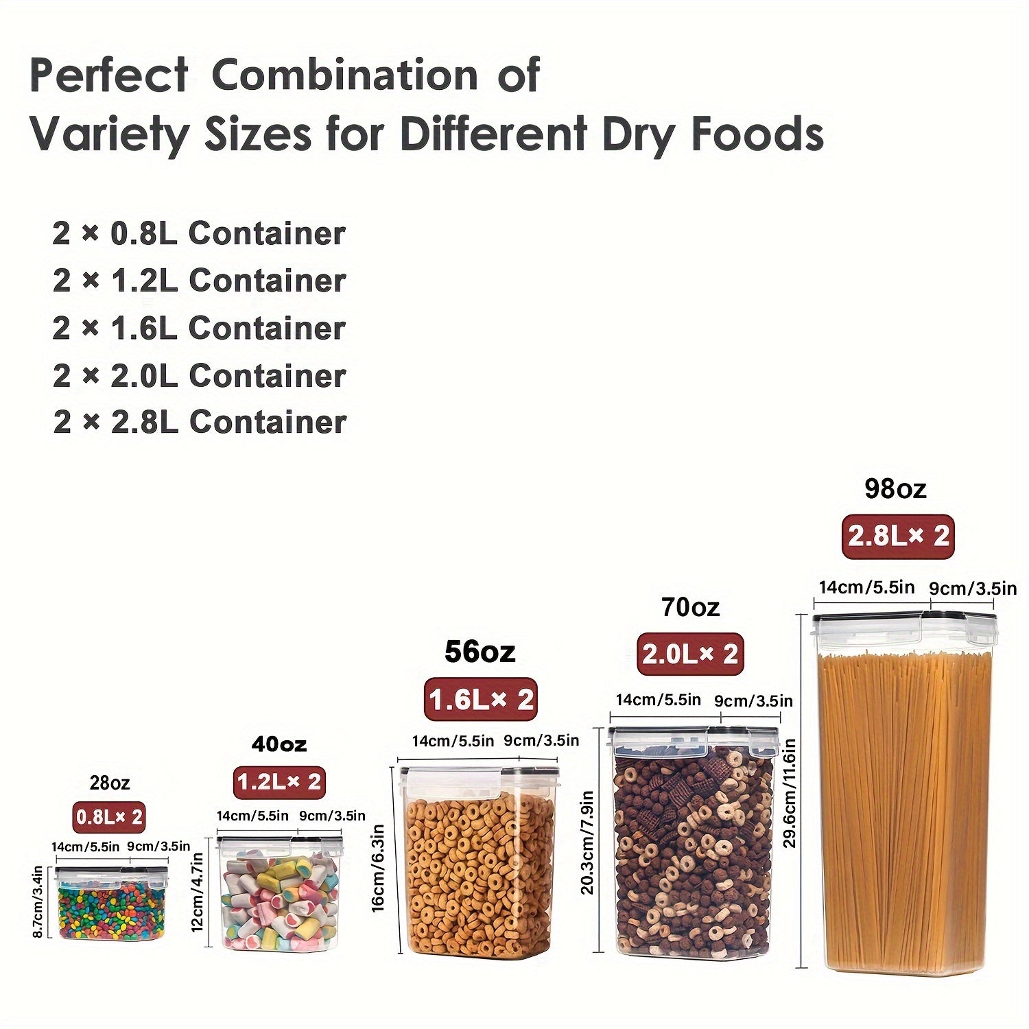 Förslut säkert ---- Våra lufttäta matförvaringsbehållare levereras med sidohängande lock som säkerställer maximal fräschör och långvarig matförvaring genom att försluta tätt. De skyddar din mat från luft och vatten, så du behöver inte oroa dig för att din favoritmat blir gammal längre! Se till att locket är ordentligt uppradat för att stänga dem.